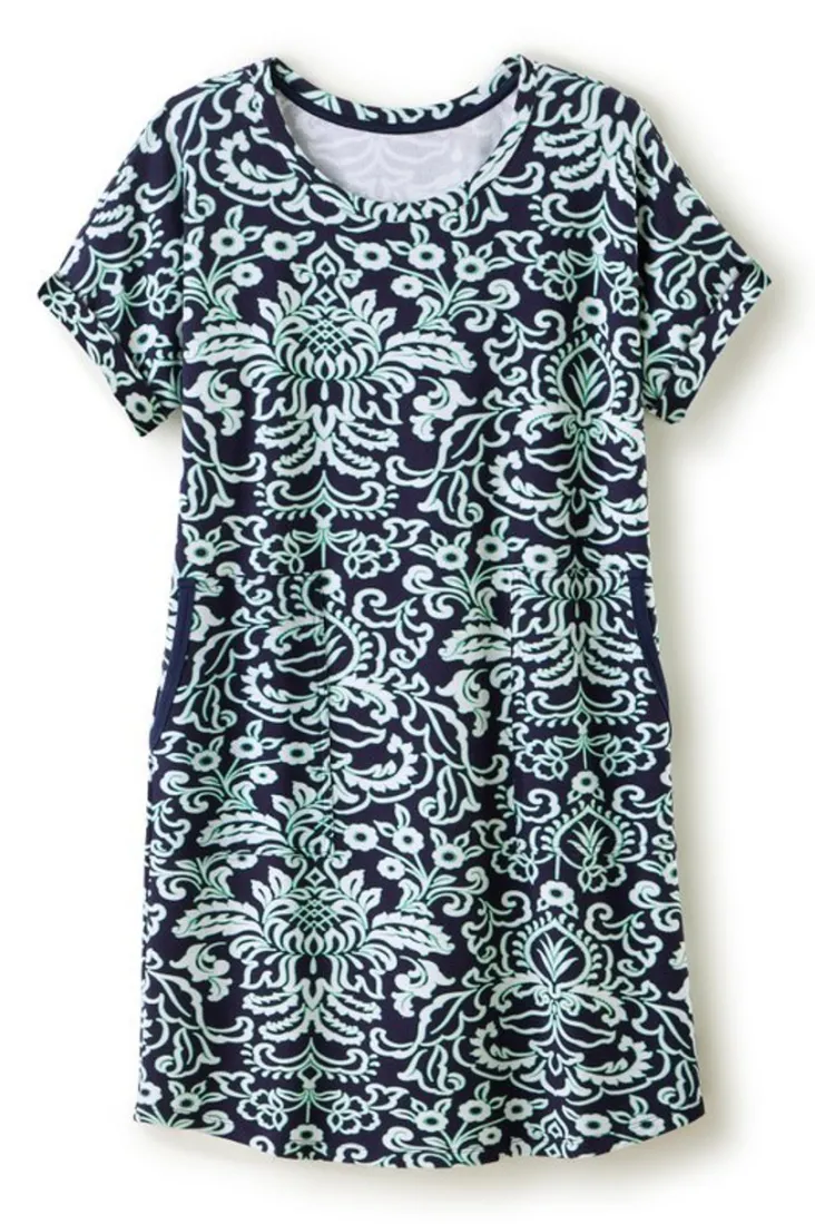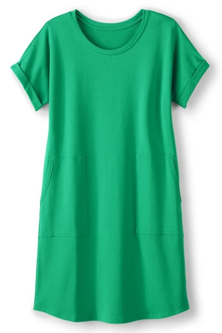 This is the comfiest shift dress you’ll own. Complete with a scoop neck, dolman short sleeves and pockets effortlessly…