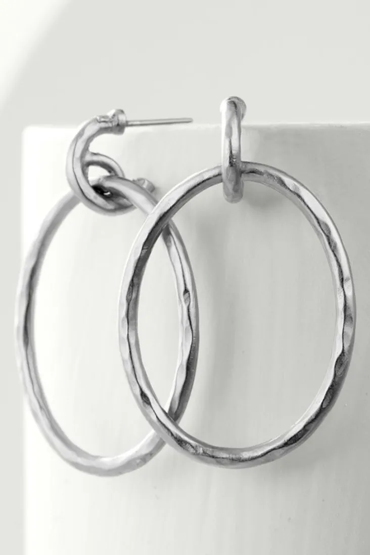 With a hammered appearance that looks like liquid metal, these hoops are anything but basic. We love the extra sway you get from the double loop design. Oxidized zinc alloy. Post back.</div>