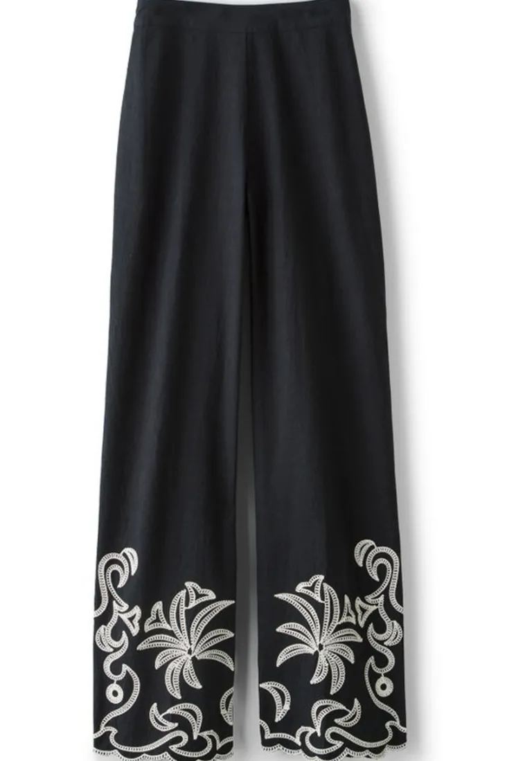 Perfect for a summer soiree, these pull-on pants are equal parts relaxed and refined. A wide-leg silhouette and stretchy back waistband allow for easy-breezy wear. And the scalloped hem and palm-inspired Soutache embroidery give them a feminine, fashion forward flourish. Plus, there’s pockets. Make it a head-to-toe look with the matching top (2GH96) and cue the compliments.