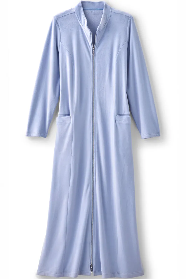 Wind down and zip UP! This robe owes its snuggly softness to dreamy double-sided velour. A two-way zip and pockets make it beyond easy, too. Princess seams perfect the fit. An at-home spa day is in your future.This item is running large, for a more classic fit we suggest ordering the next size down. For example, size medium should order a size small.