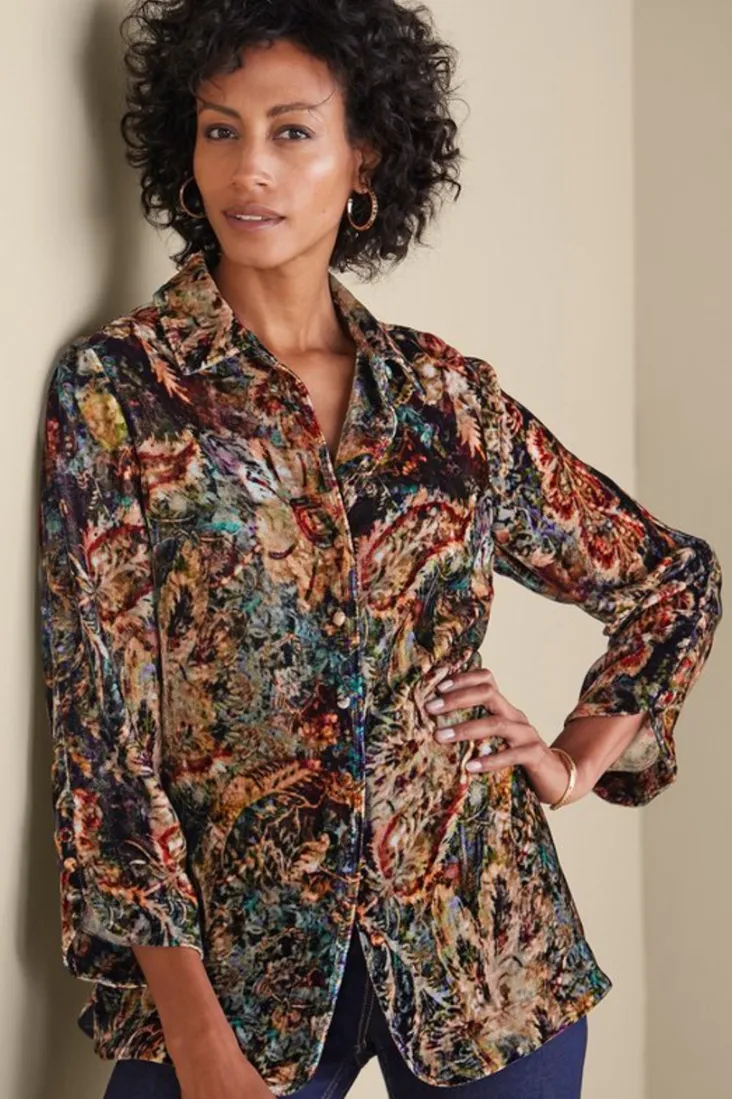 Soft Surroundings Tops-Icon Silk Velvet Poets Tunic Shirt