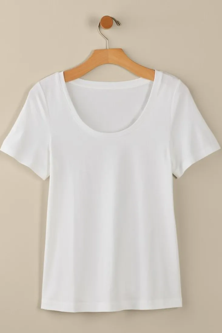 In ultra-soft and stretchy SUPIMA fabric, this tee is sure to become the most-worn piece in your warm-weather wardrobe. It’s an instant classic in a tried-and-true scoop neck silhouette that layers with ease.