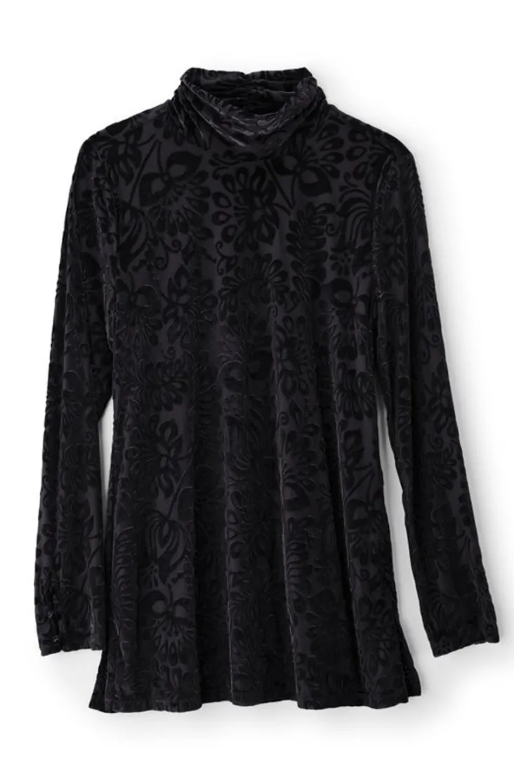 Gorgeous velvet burnout, in a rich shades, puts your must-have turtleneck in a celebratory mood just right for the seaso…