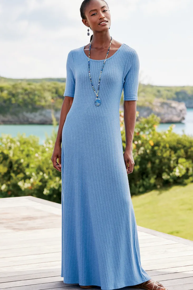 Our long-running Santiago dress, updated in a new ribbed fabric! This favorite style has above-the-elbow sleeves, a scoo…