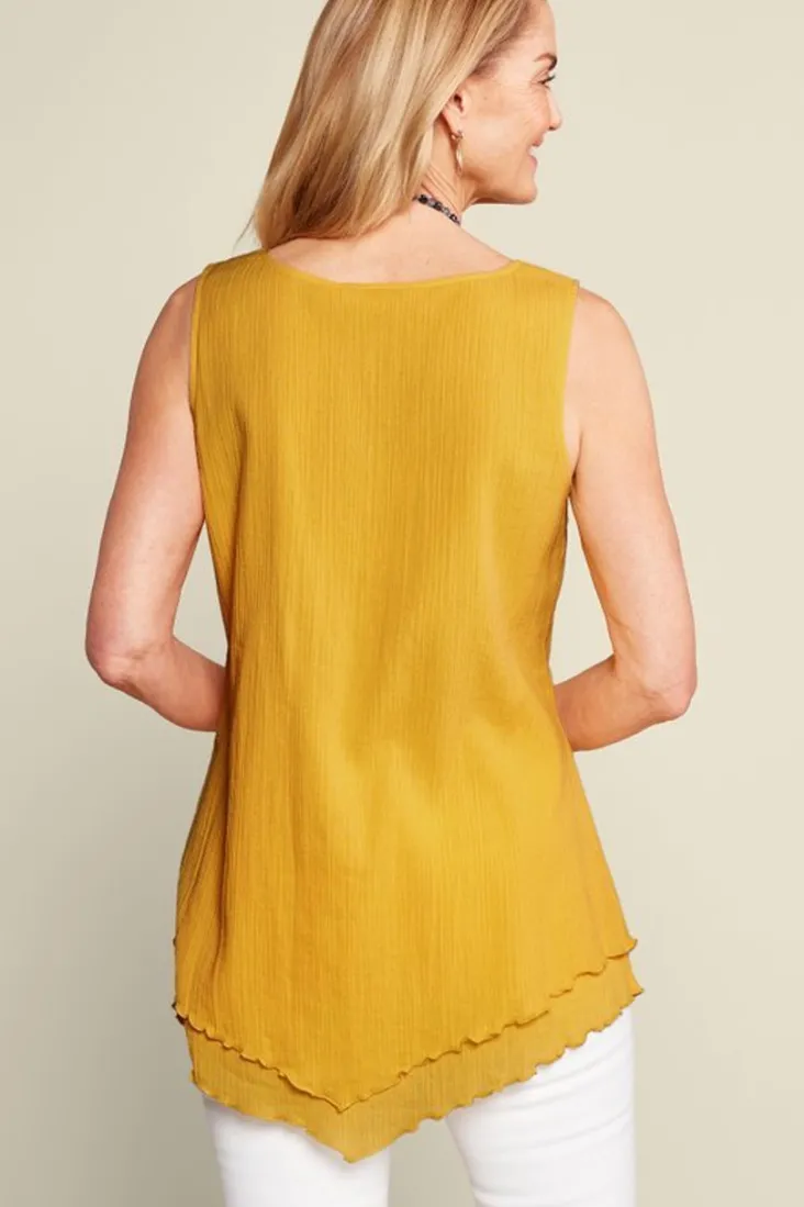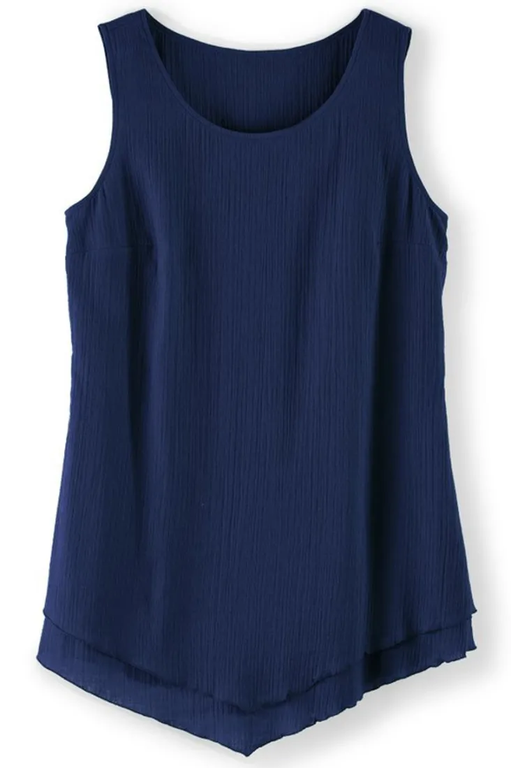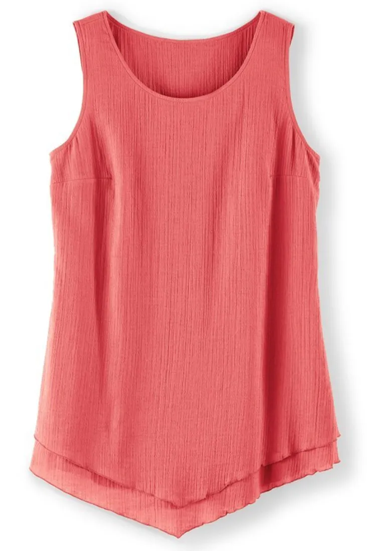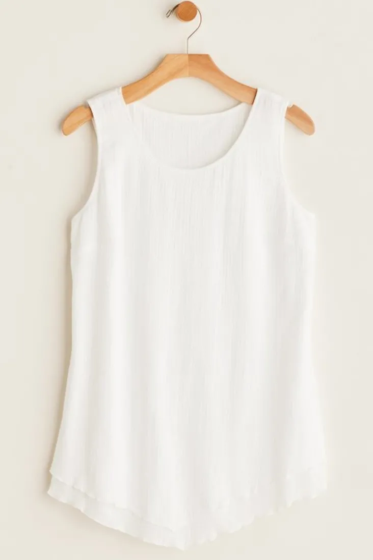 Lightweight, airy and carefree crinkles, just a few reasons why we love gauze. This customer-favorite tank features a simple scoop neckline and chic lettuce edge hem. So versatile you can wear with almost anything, too!